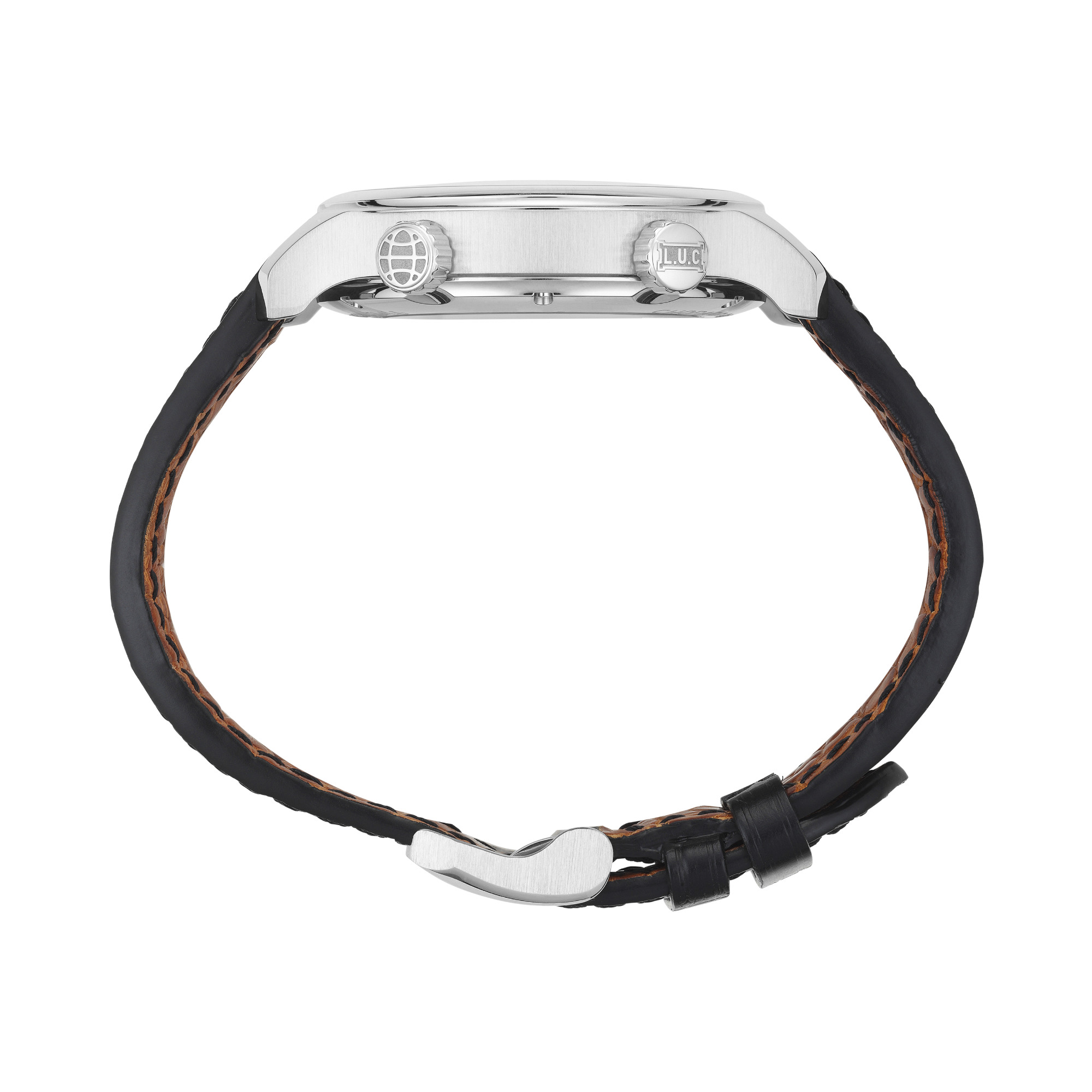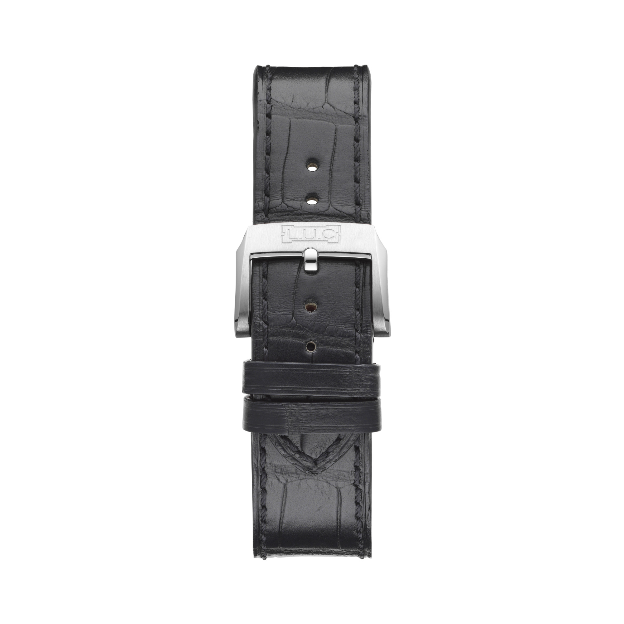In einer schwarzen Farbe, die durch Galvanisierung erreicht wird – satiniertes Finish mit Sonnenschliff mit L.U.CHOPARD-Logo als Fokuspunkt – arabische Ziffern und Indexe mit Super-LumiNova-Beschichtung