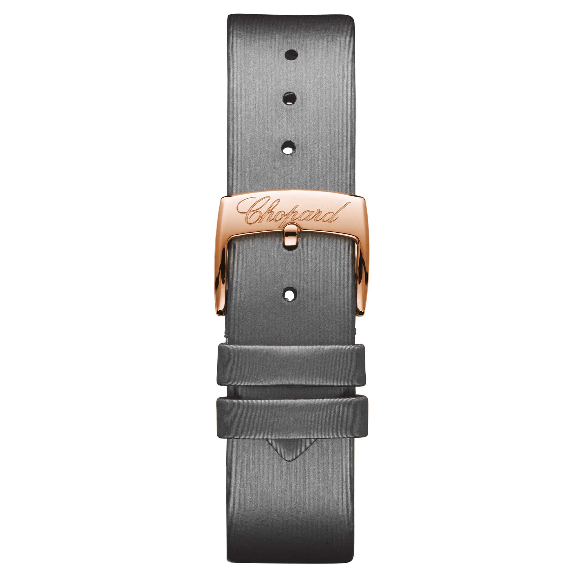 Ref. 274808-5014 - Chic und feminin – die Uhr Happy Sport 36 mm Automatic aus Roségold ist mit einem mechanischen Uhrwerk mit Automatikaufzug und 42 Stunden Gangreserve ausgestattet. Als wahre Ode an die Lebensfreude verfügt dieser neue Zeitmesser mit seinem zierlichen 36-mm-Gehäuse über ein feines elegantes gebürstetes graues Guilloche-Zifferblatt und über eine mit Diamanten besetzte Lünette sowie über ein passendes aufgerauhtes graues Stoffarmband. Als stilvolles Sinnbild der Freiheit ist die Happy Sport eine Talismanuhr für freigeistige Damen.