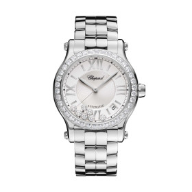 Ref. 274891-5001 - Die Happy Sport-Kollektion ist das Sinnbild für die Kreativität und Stärke von Chopard. Ihre verspielten, frei wirbelnden Diamanten tanzen zwischen zwei Saphirgläsern und fangen seit 1993 die Vorstellungskraft ein, als Chopard das das erste Unternehmen war, das Edelstahl und Diamanten kombinierte. Little Diamonds Do Great Things