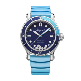Ref. 278578-6002 - Die Happy Sport-Kollektion ist das Sinnbild für die Kreativität und Stärke von Chopard. Ihre verspielten, frei wirbelnden Diamanten tanzen zwischen zwei Saphirgläsern und fangen seit 1993 die Vorstellungskraft ein, als Chopard das das erste Unternehmen war, das Edelstahl und Diamanten kombinierte. Little Diamonds Do Great Things.