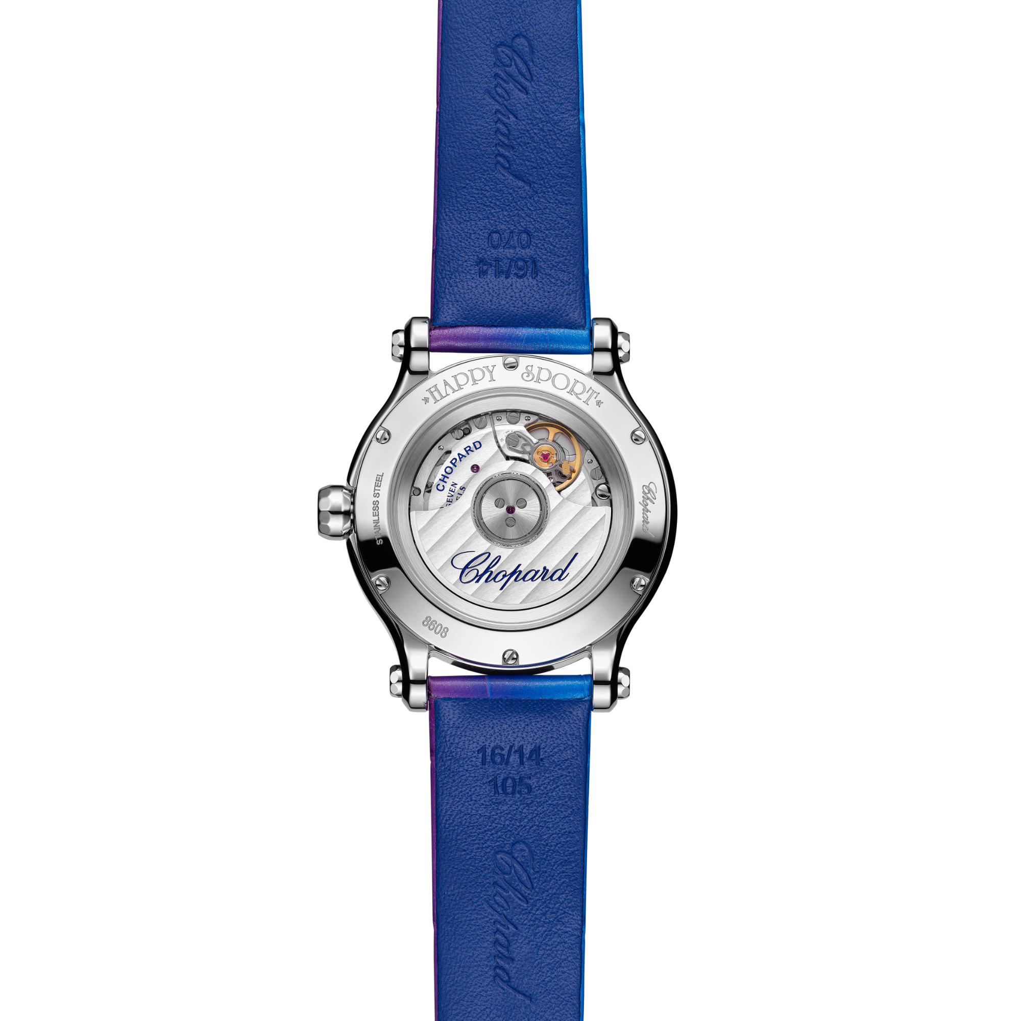 Dank der uhrmacherischen Kompetenz von Chopard ist die Happy Sport Uhr 33 mm mit einem mechanischen Uhrwerk mit Automatikaufzug ausgestattet, das speziell für zierlichere Damenuhren entwickelt wurde. Little Diamonds Do Great Things