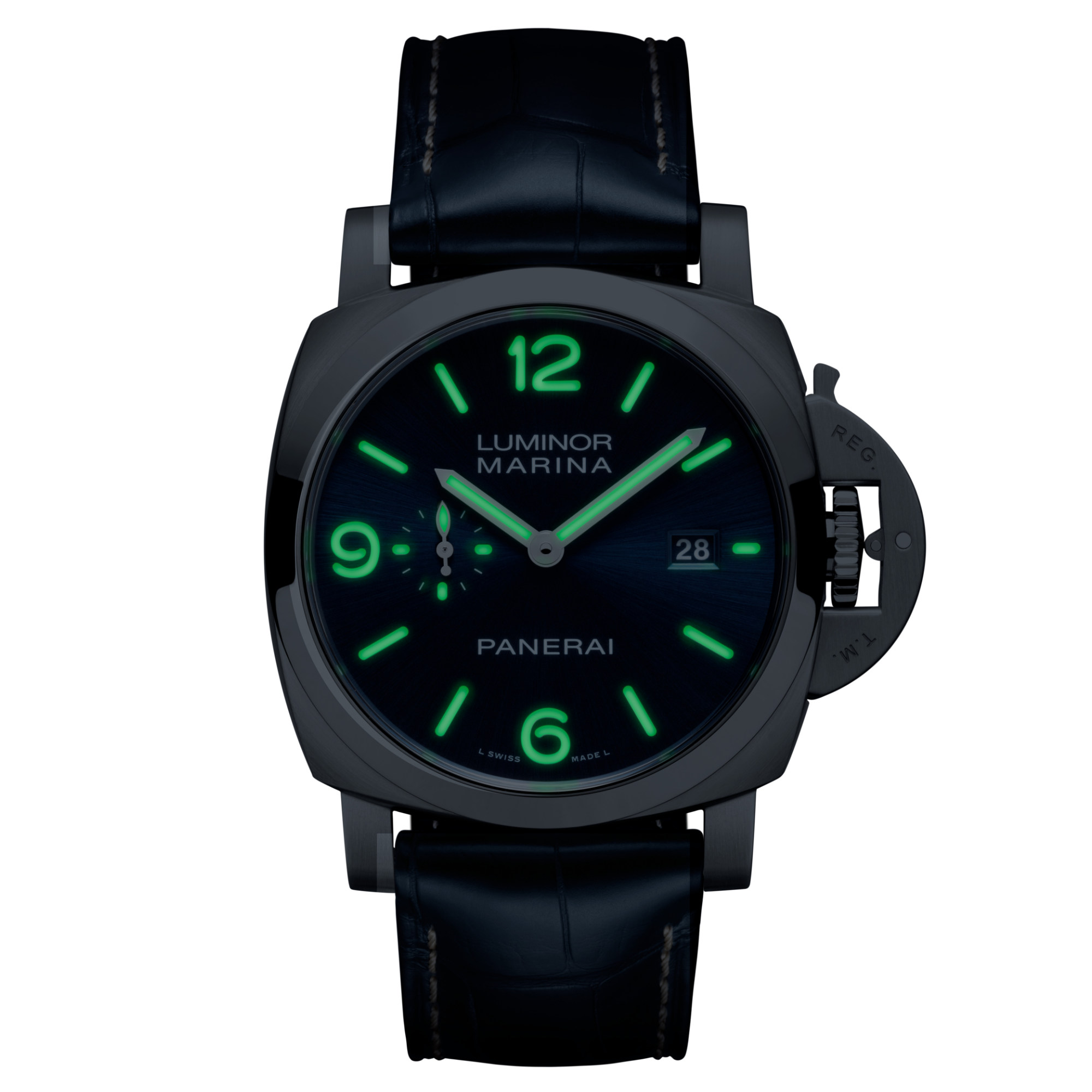 Blau mit Sonnenschliff, arabischen Ziffern und Stundenmarkierungen aus Grade X2 Super-LumiNova®