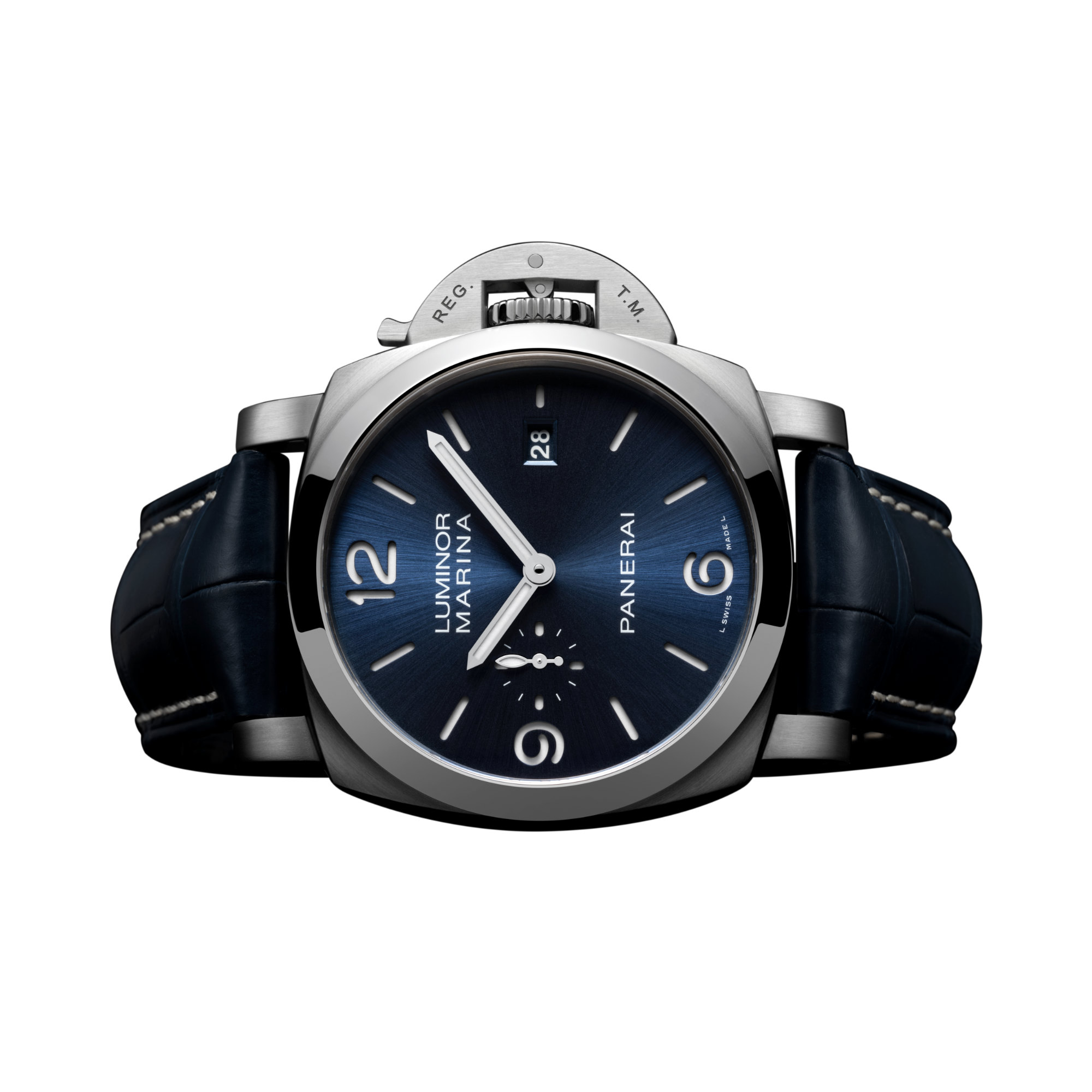 Dunkelblaues Alligatorlederarmband mit Dornschließe aus Titan, Schnellentriegelungssystem