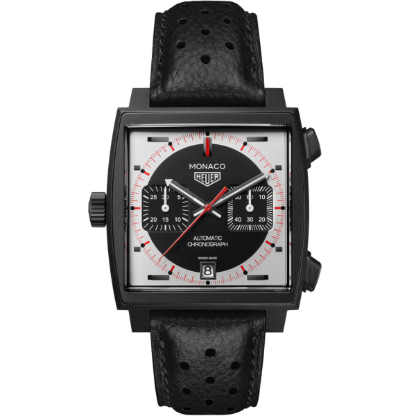 Ref. CAW218F.FC6356 - Die TAG Heuer Monaco Chronograph Stopwatch lässt die Ästhetik der originalen TAG Heuer Stoppuhren aus den 1960ern und 70ern wieder aufleben und bringt den Nervenkitzel der Rennstrecke an Ihr Handgelenk. Dieser limitierte Chronograph aus Titan mit schwarzer DLC-Beschichtung ist eine Hommage an das reiche Erbe der Zeitmessung von TAG Heuer. Er verbindet das legendäre Calibre 11 mit einem entschiedenen Vintage-Design.